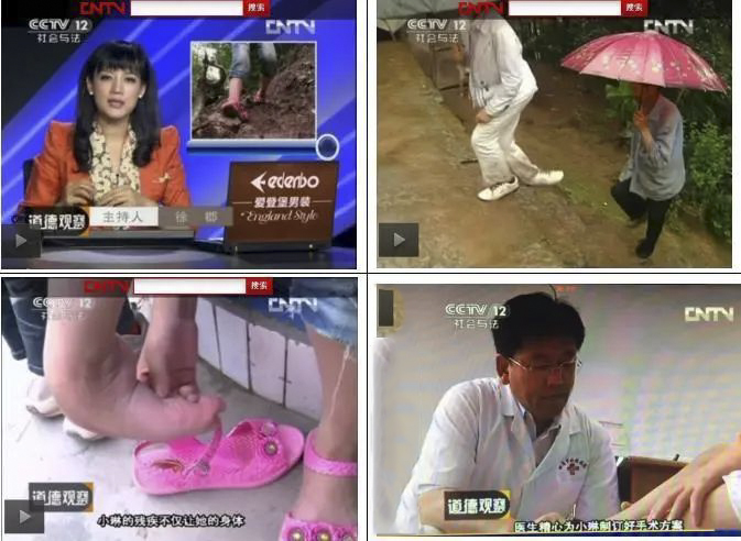 无独有偶,还有一位“马蹄少女”小琳,13岁,来自乐山沐川,中央电视台CCTV-12社会与法频道《道德观察》栏目以“被遗弃女孩的新生活”为题作了报道。小琳也是刘可新主任的爱心患者。刘主任感慨地回忆,小琳右脚脚背向下,后翻120度,是典型的马蹄足,手术难度大;虽然小琳成绩优异,但马蹄足的身体缺陷使得她经常受到同学的嘲笑和讥讽,心灵很受伤。幸运的是小琳得到当地关工委爱心关怀,并有幸遇到了医术高超的刘可新主任。刘主任为小琳实施了伊里扎洛夫脚部矫形术,经过2小时手术及2个月的恢复训练,小琳的右脚神奇恢复,能够正常走路了!和常人没什么区别!自信开始她的新生活!