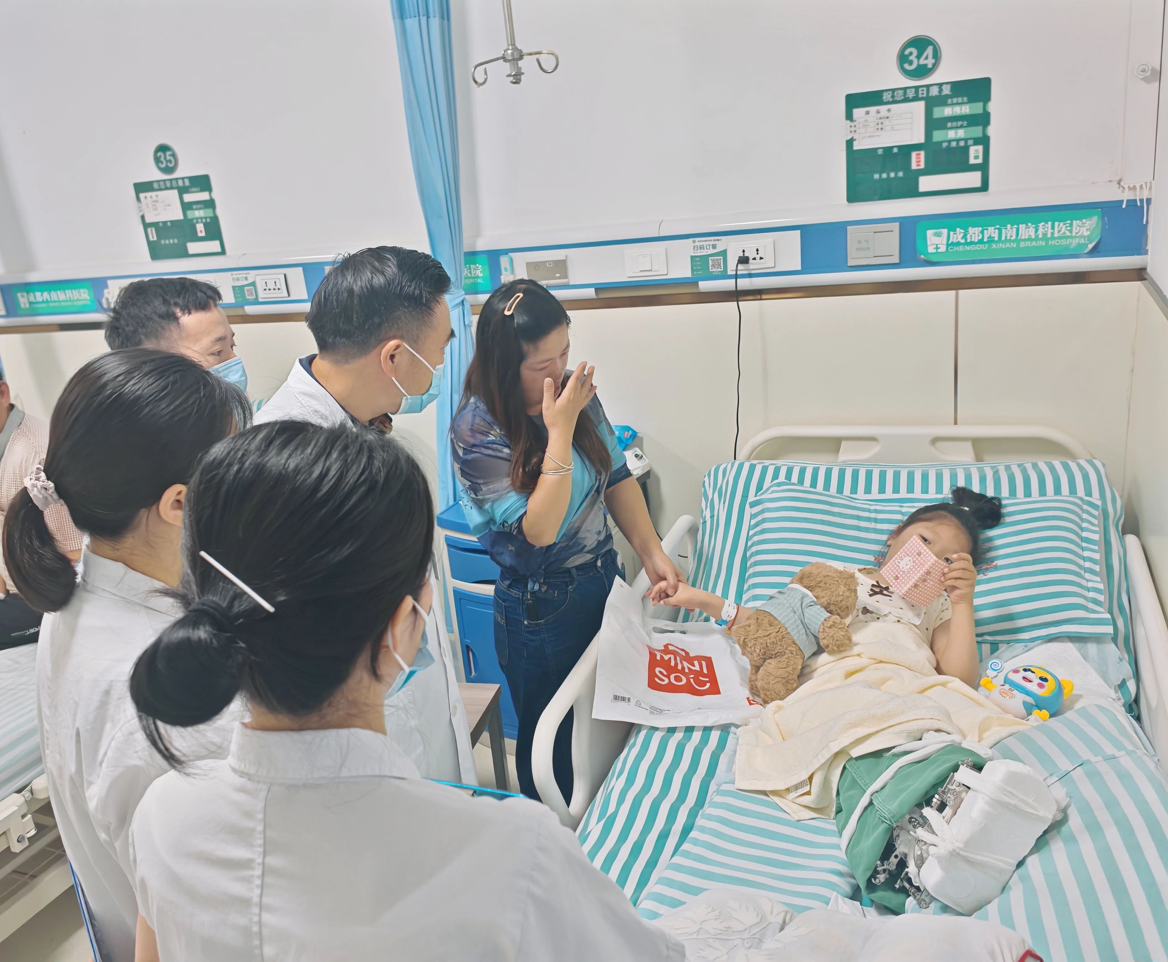 小女孩的姑妈将一切看在眼里,试图用笑容来掩饰内心的激动,但眼眶却不受控制地红了起来,泪水在眼眶里打转。终于,她再也忍不住,笑着抹了抹眼泪,声音略带哽咽地连连对李主任和团队道谢:“太谢谢你们了!这么用心……不仅治好了孩子的病,还给了她这么多的爱和鼓励。在我们最无助的时候,是你们给了我们希望。”